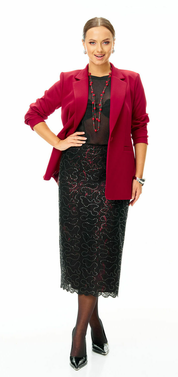 Состав ткани жакета: ПЭ 55%, вискоза 40%, спандекс 5%.